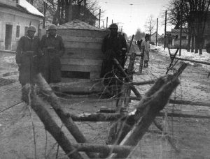 Posto di controllo lungo la recinzione militare che circondò Lubiana nel 1942: oltre 30 km di filo spinato trasformarono la città in un campo di prigionia a cielo aperto.