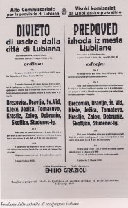Proclama dell’Alto Commissariato italiano per la Provincia di Lubiana (1942): divieto di uscita dalla città recintata. Documento della politica di controllo e internamento della popolazione civile slovena.
